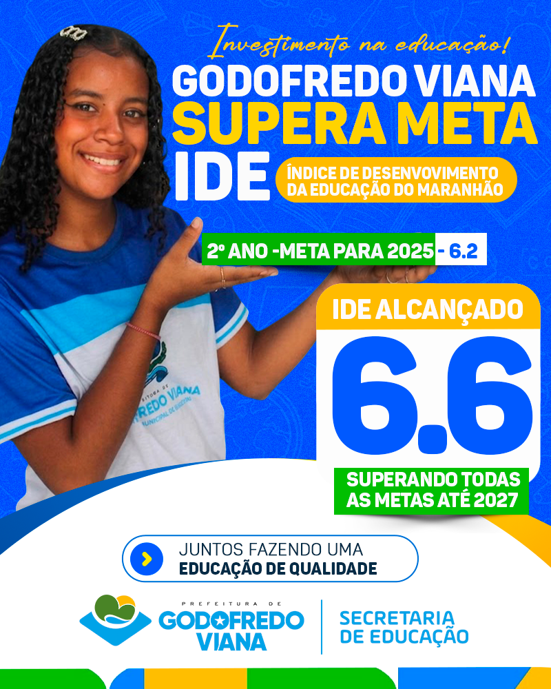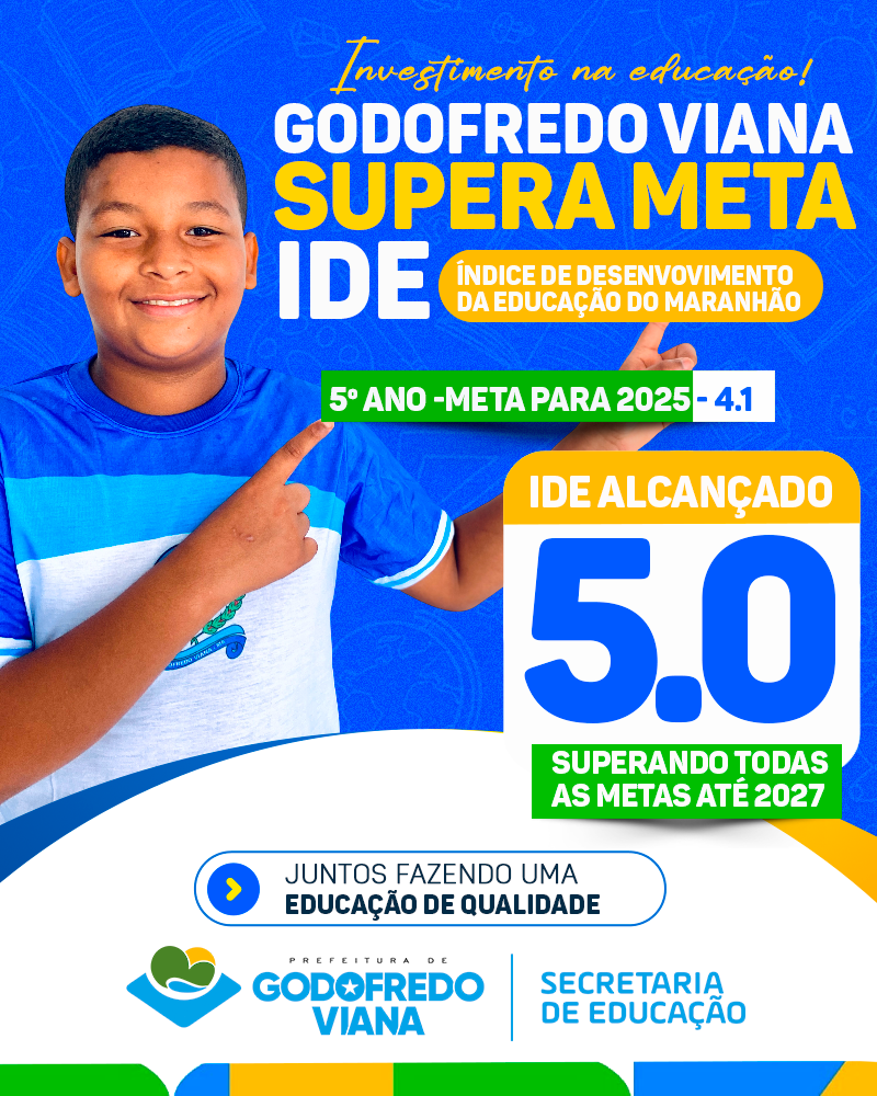 O município de Godofredo Viana alcançou um importante resultado na área da educação ao superar as metas estabelecidas pelo Índice de Desenvolvimento da Educação do Maranhão (IDE-MA) para o ano de 2025. Os dados demonstram avanços significativos tanto nos anos iniciais quanto nos anos finais do ensino fundamental.